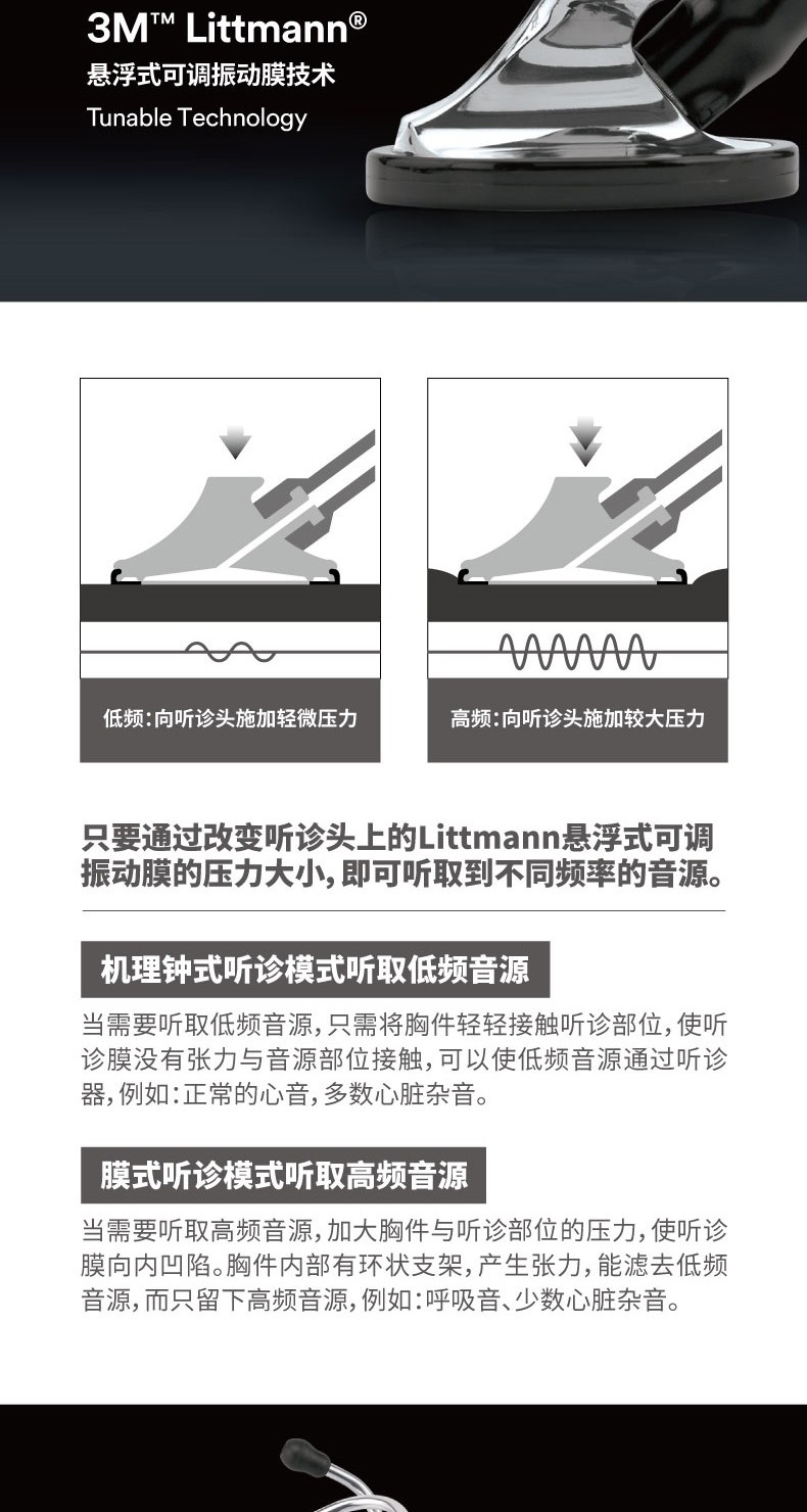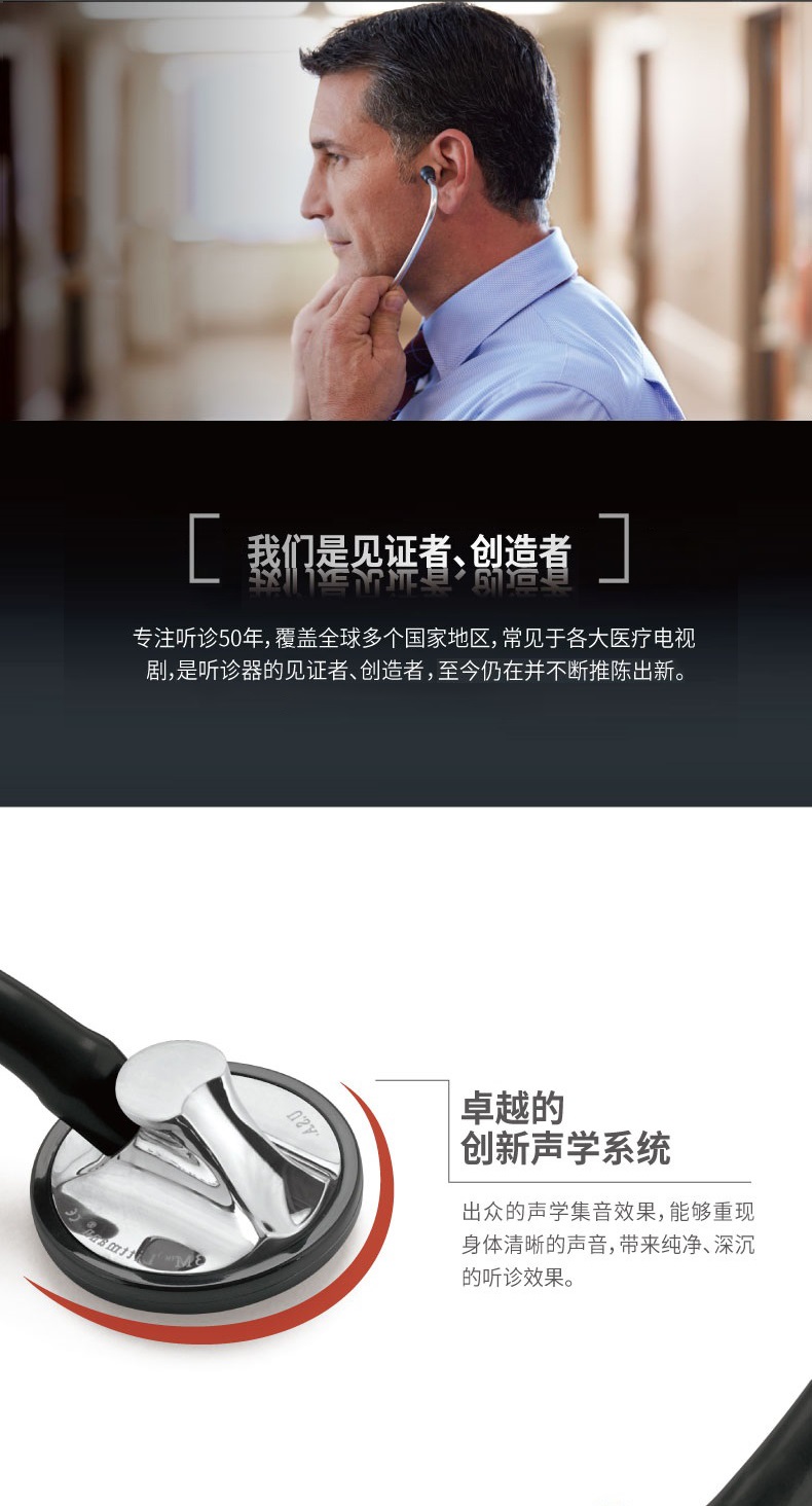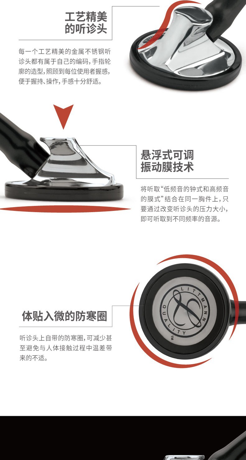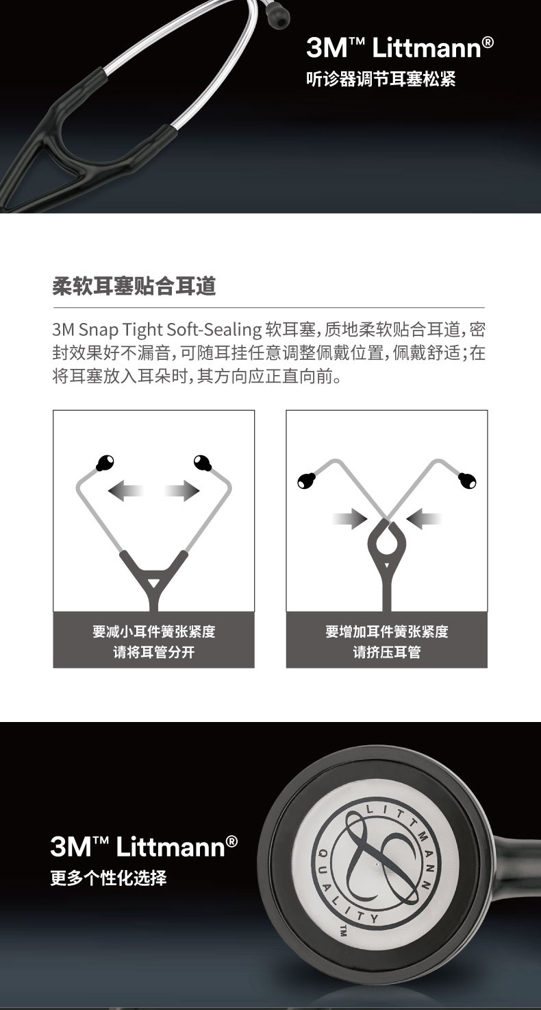 3M™ Littmann®大师型心脏专科听诊器 Master Cardiology Stethoscope2160骑士黑