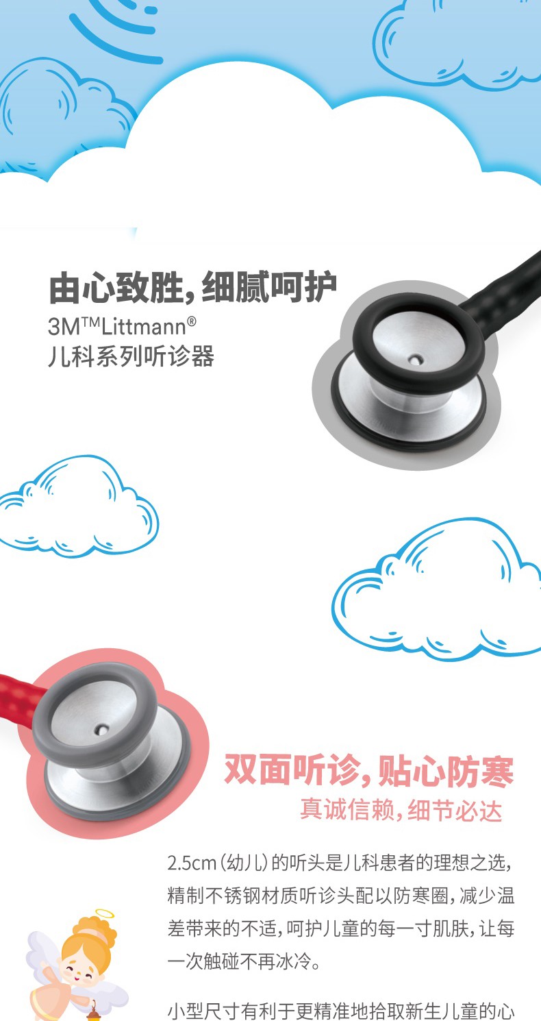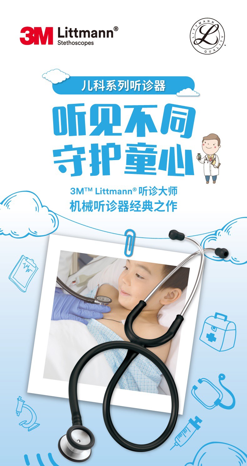 3M™ Littmann®儿科听诊器 Classic II Pediatric Stethoscope2113骑士黑