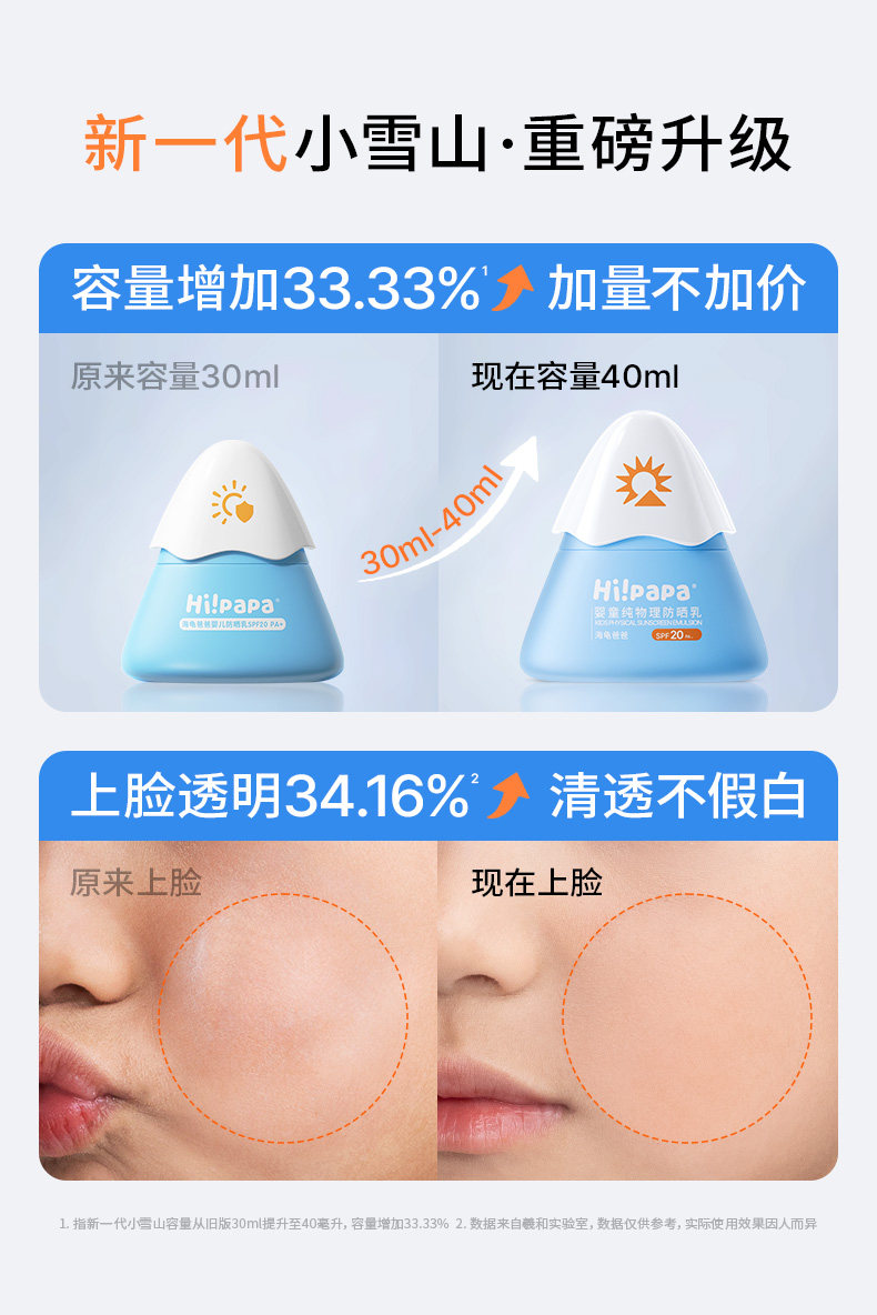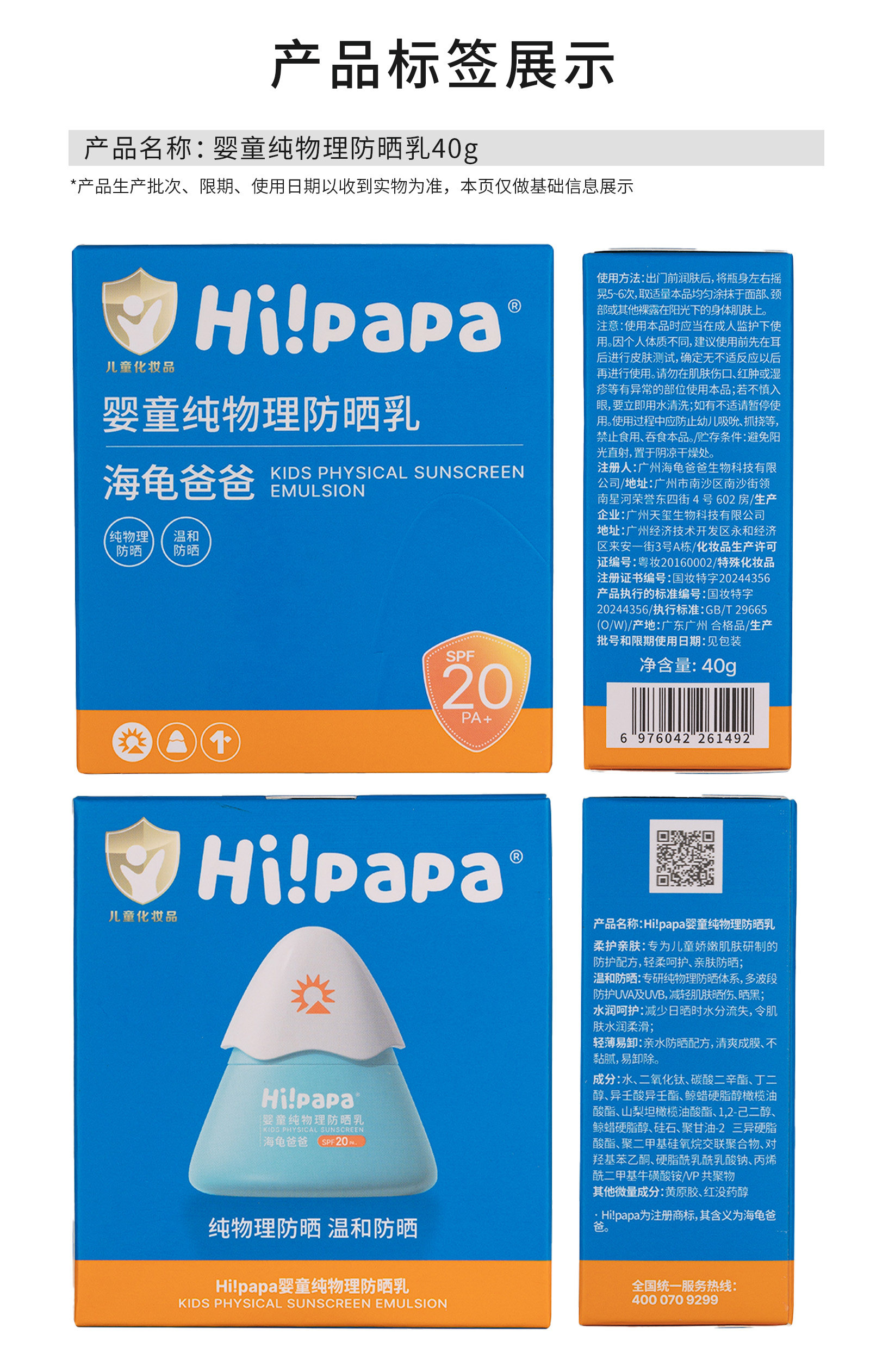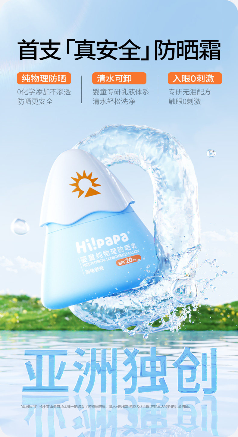 海龟爸爸儿童防晒霜 小雪山防晒 宝宝专用 隔离紫外线 婴儿物理防晒乳