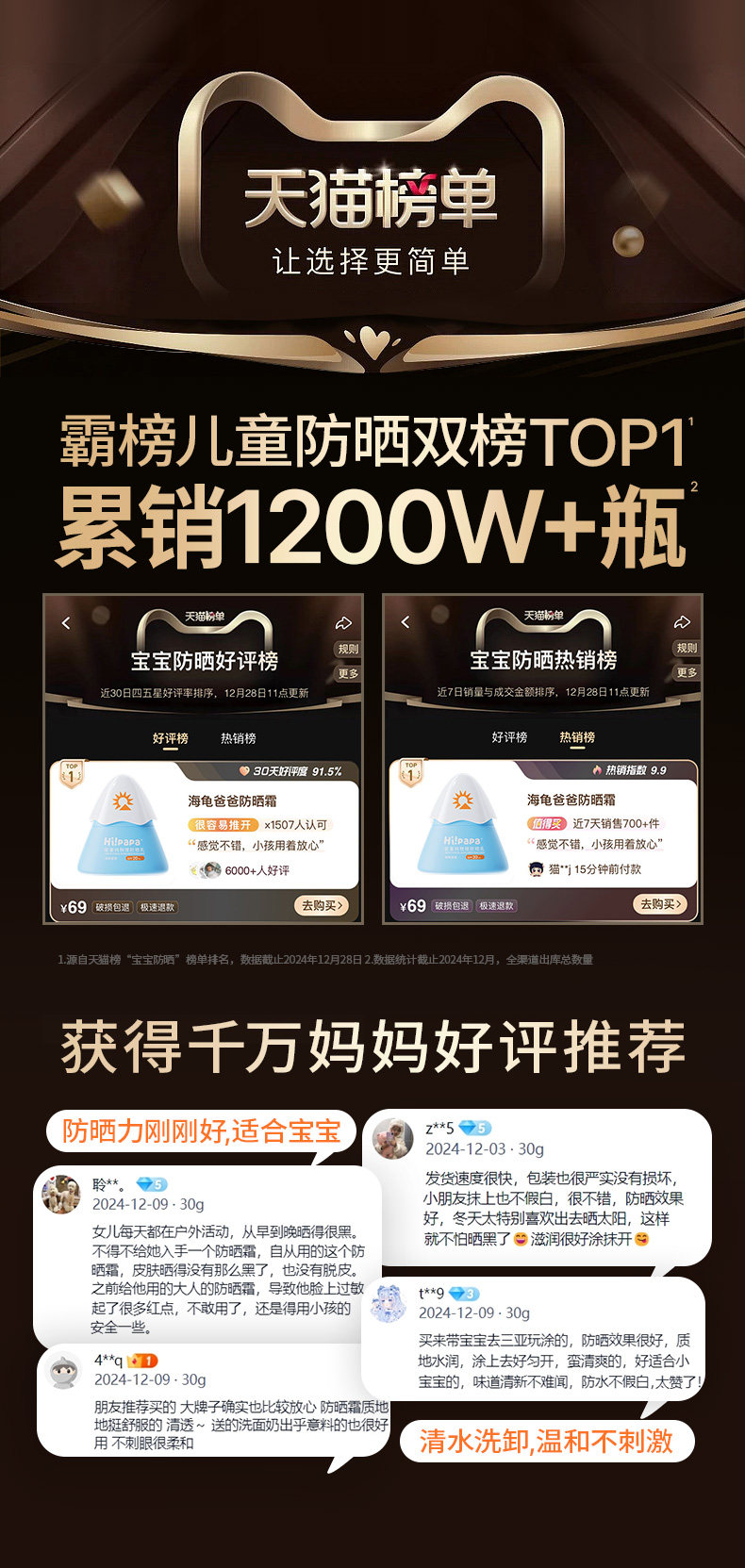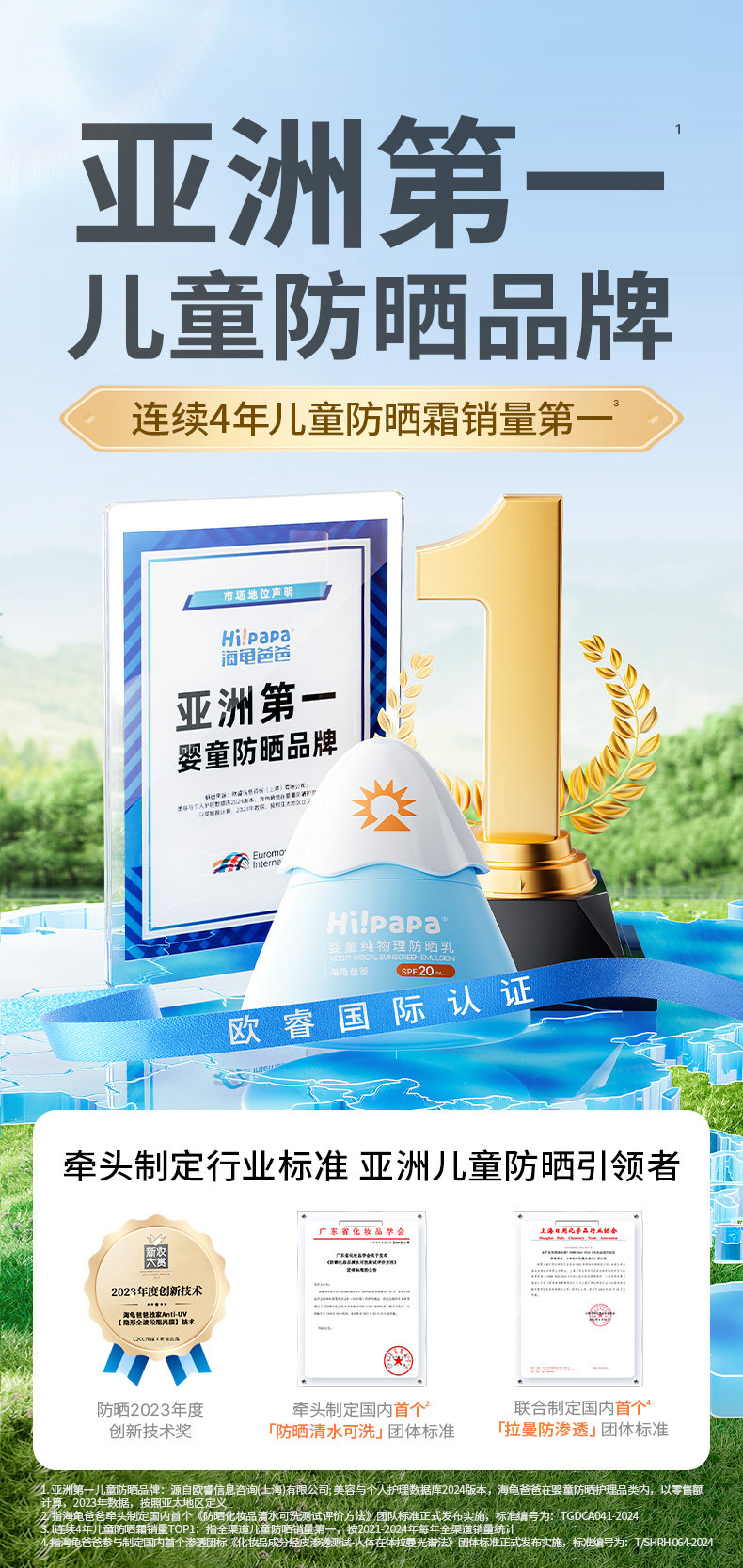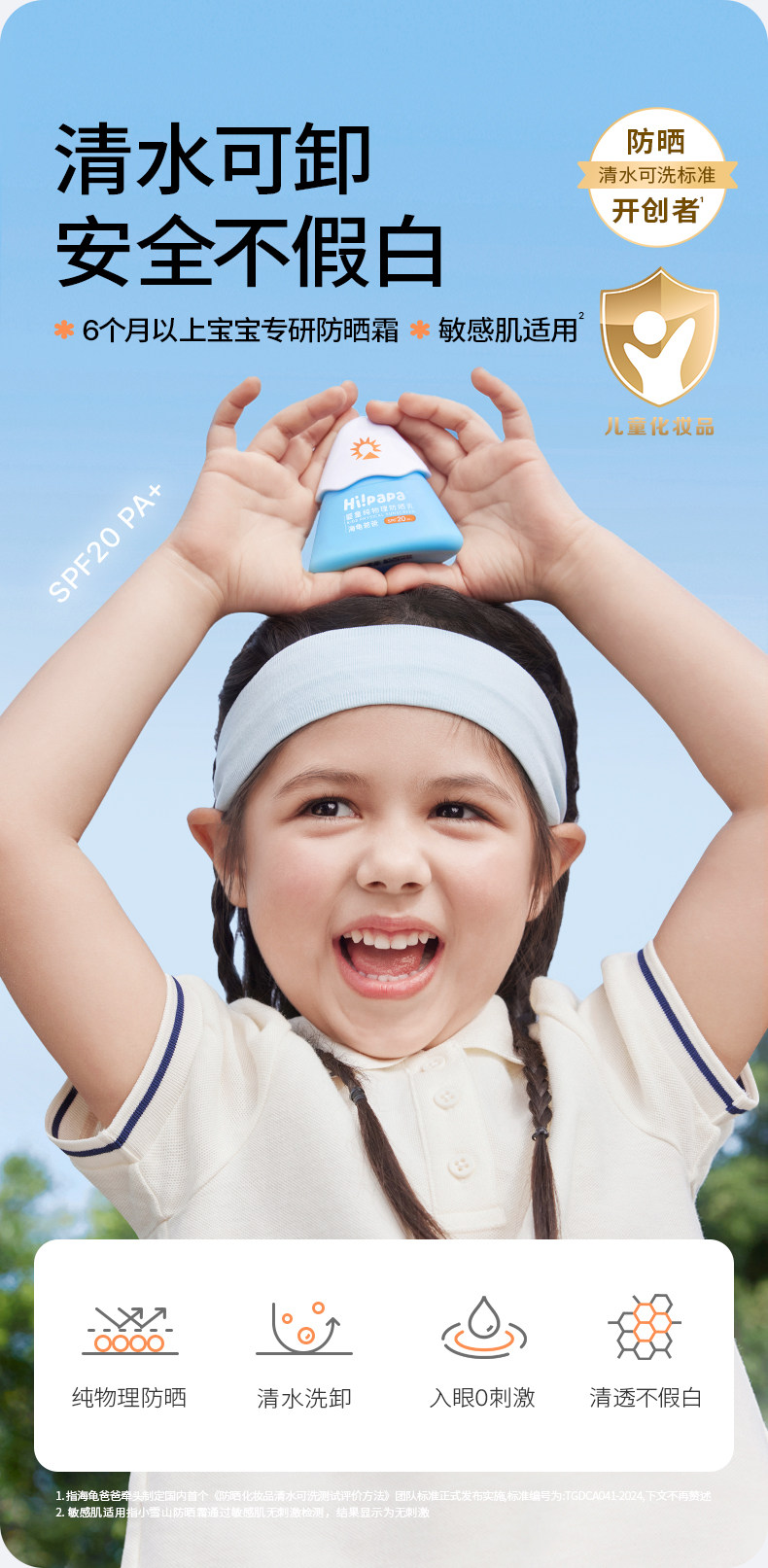 海龟爸爸儿童防晒霜 小雪山防晒 宝宝专用 隔离紫外线 婴儿物理防晒乳