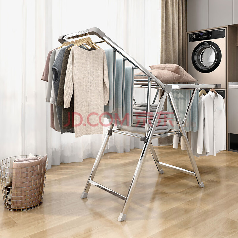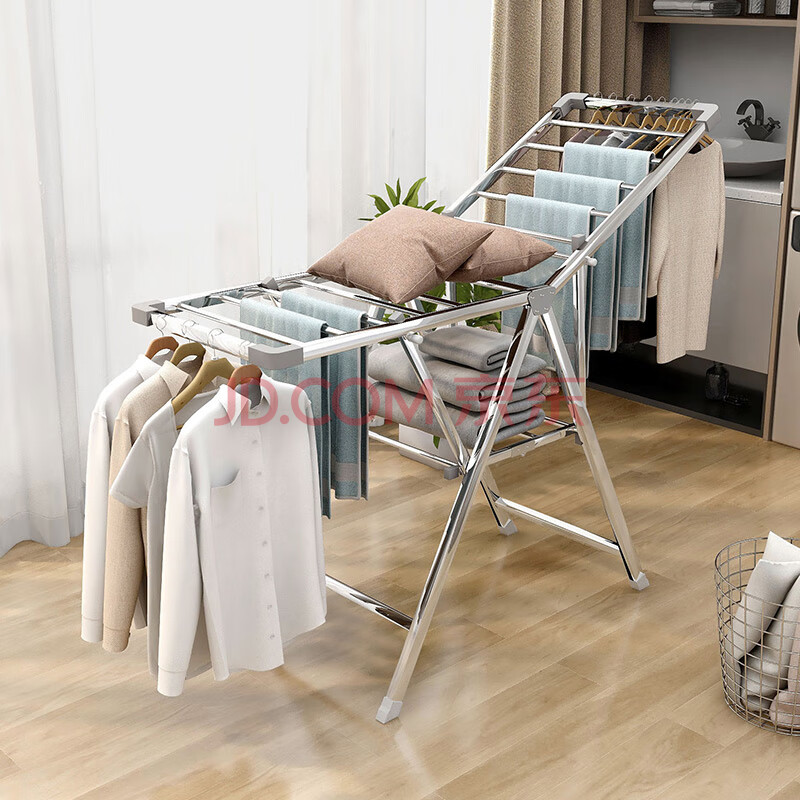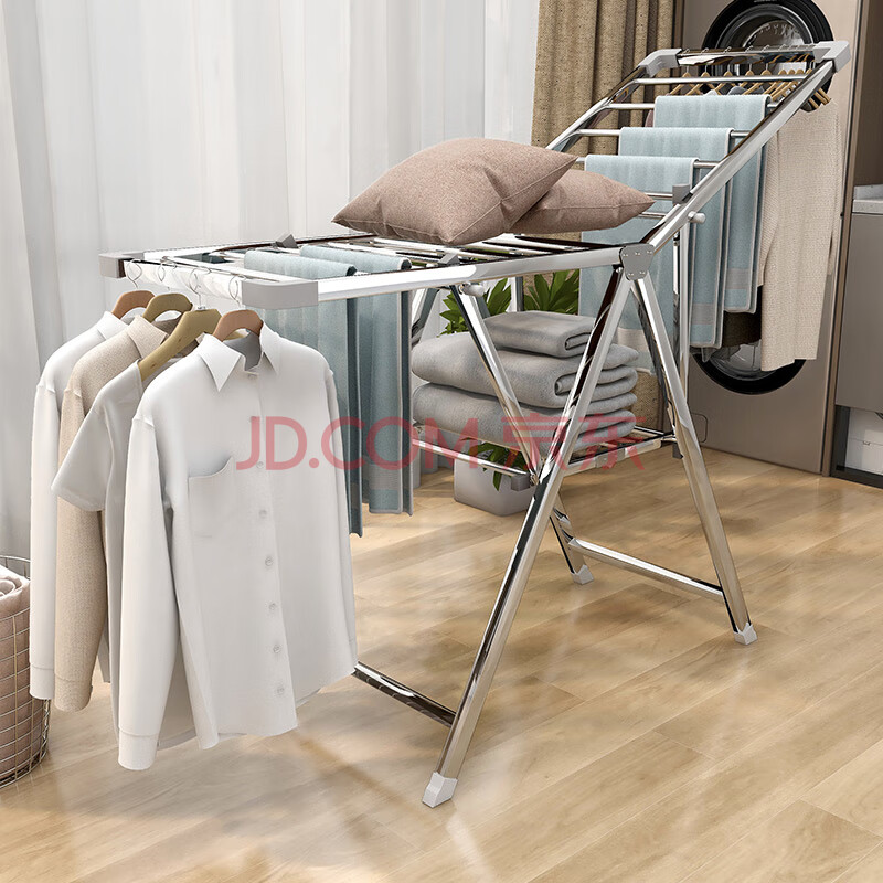 盼盼晾衣架不锈钢落地折叠翼型室内外晒被尿布架PP-400U不锈钢plus版