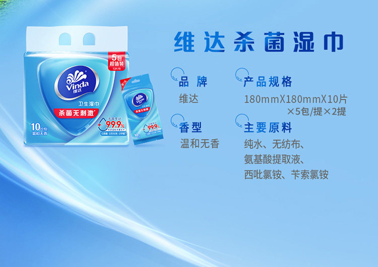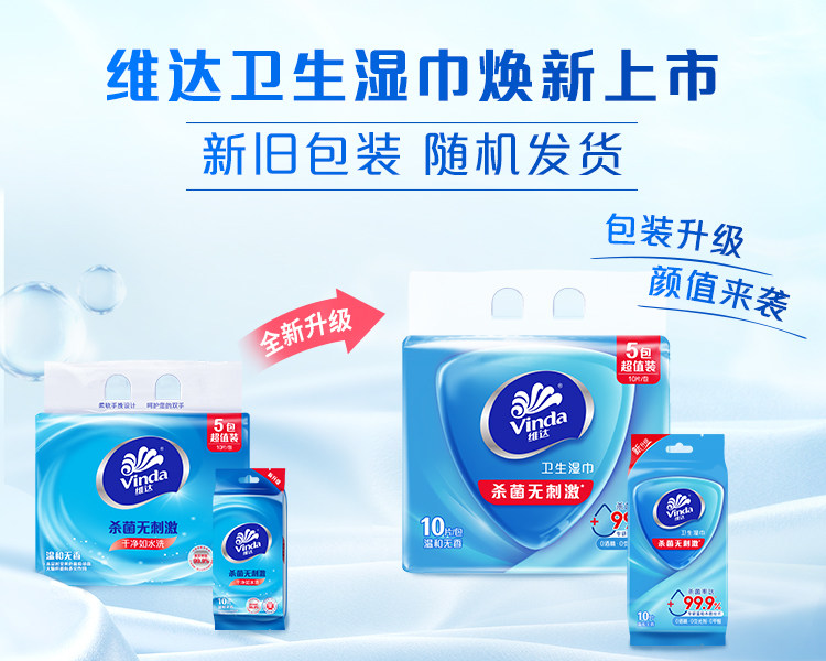 维达(Vinda)杀菌湿巾 10片*10包 湿巾小包独立便携装 湿纸巾