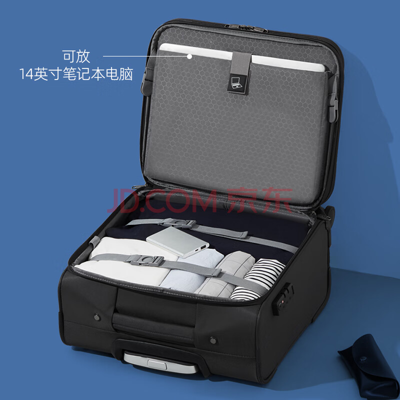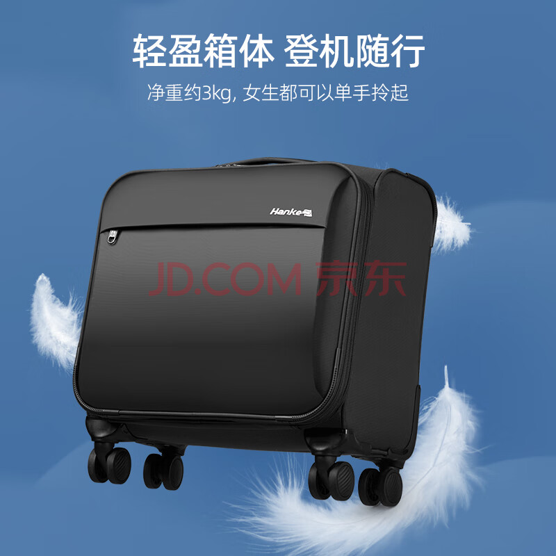 汉客万向轮拉杆箱男女商务旅行箱小行李箱子登机箱密码箱16英寸黑色