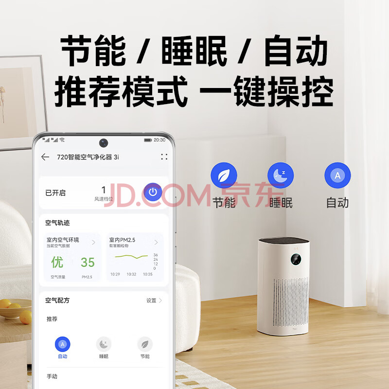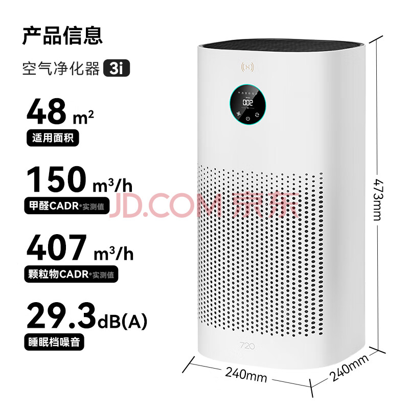 鸿蒙智选华为鸿蒙720智能空气净化器3i 除甲醛除烟味 卧室家用新房 杀菌吸猫毛 宠物花粉过敏原 小户型静音