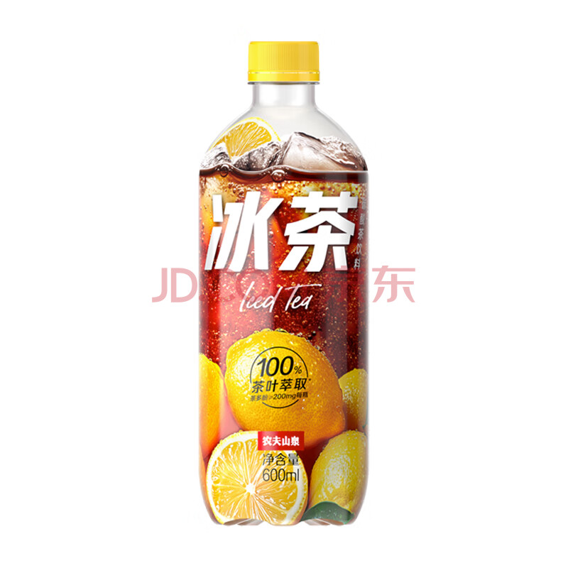 农夫山泉冰茶冰爽碳酸柠檬红茶气泡饮料600ml*15瓶100%茶叶萃取饮品