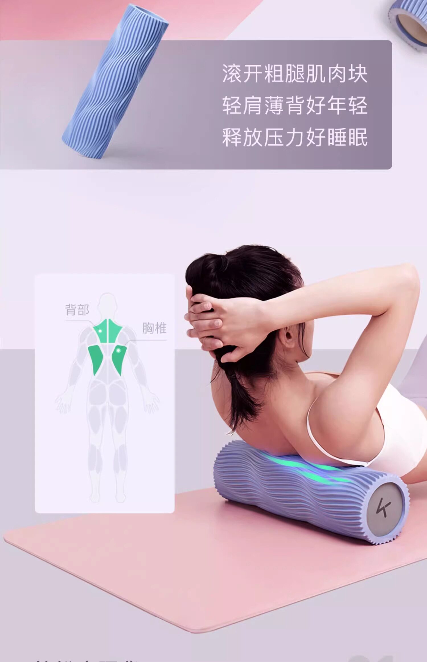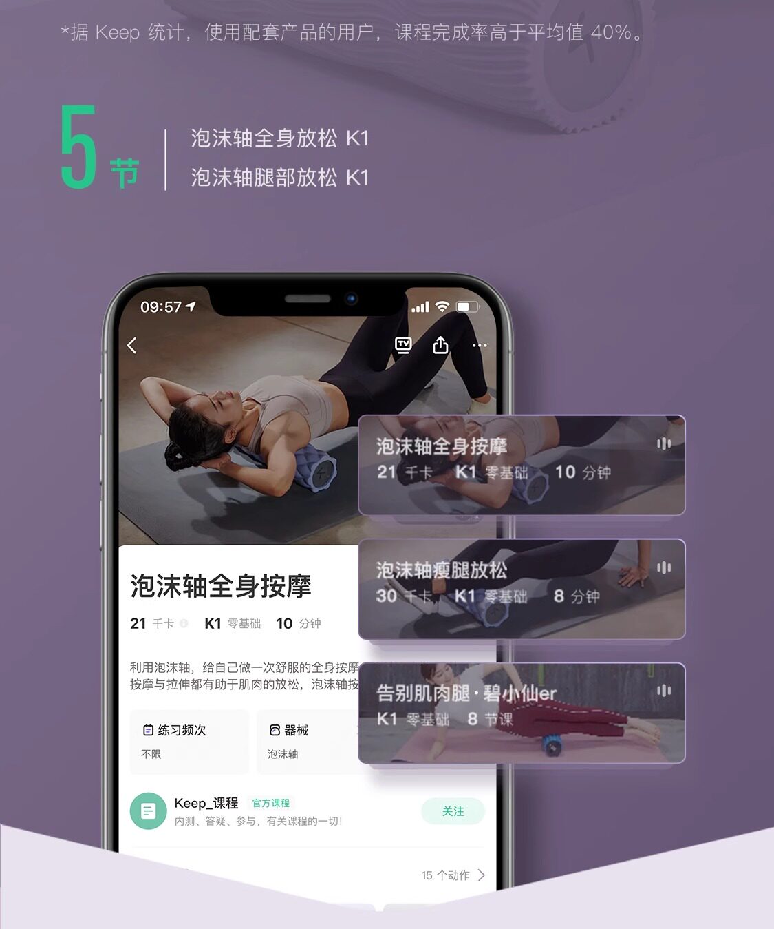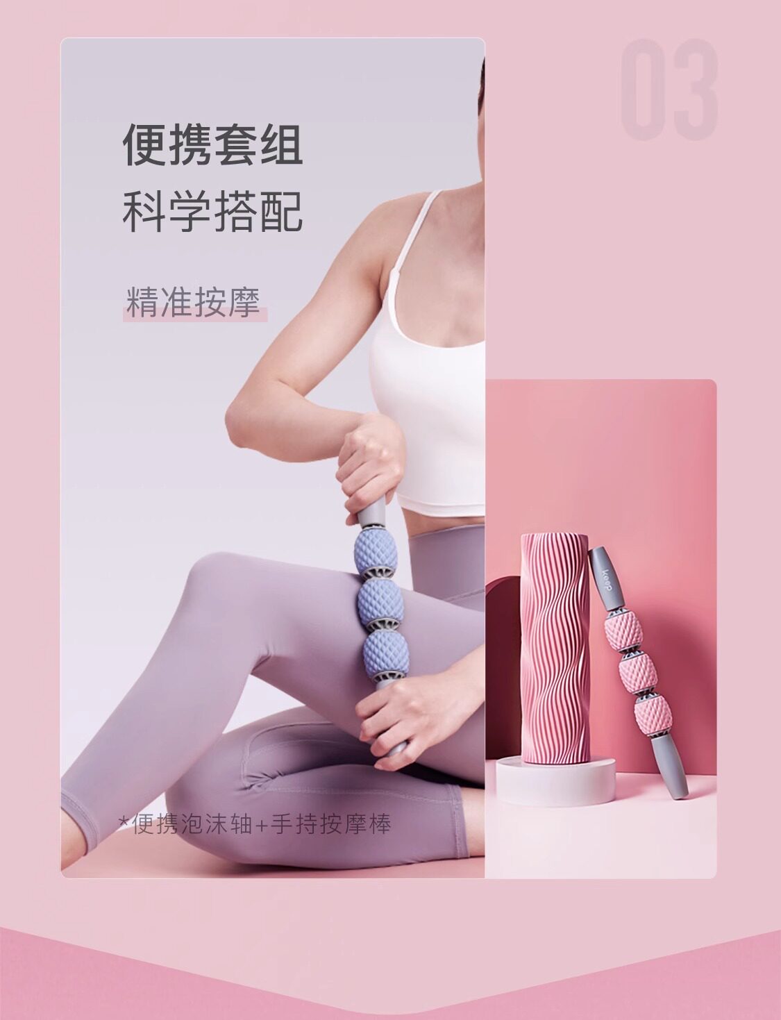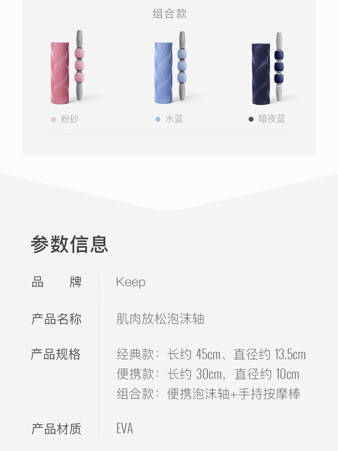 Keep泡沫轴滚轴狼牙棒 水蓝色 两件套【30cm泡沫轴+按摩棒】 肌肉放松专业按摩瘦腿实心款滚轮滚背瑜伽柱