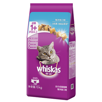 伟嘉(whiskas)海洋鱼味成猫猫粮10kg 加菲英短猫咪夹心粮全价粮